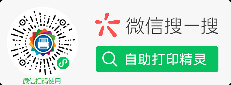 微信搜索“自助打印精灵”或扫码即可使用,一台打印机一个小程序码,不混乱。