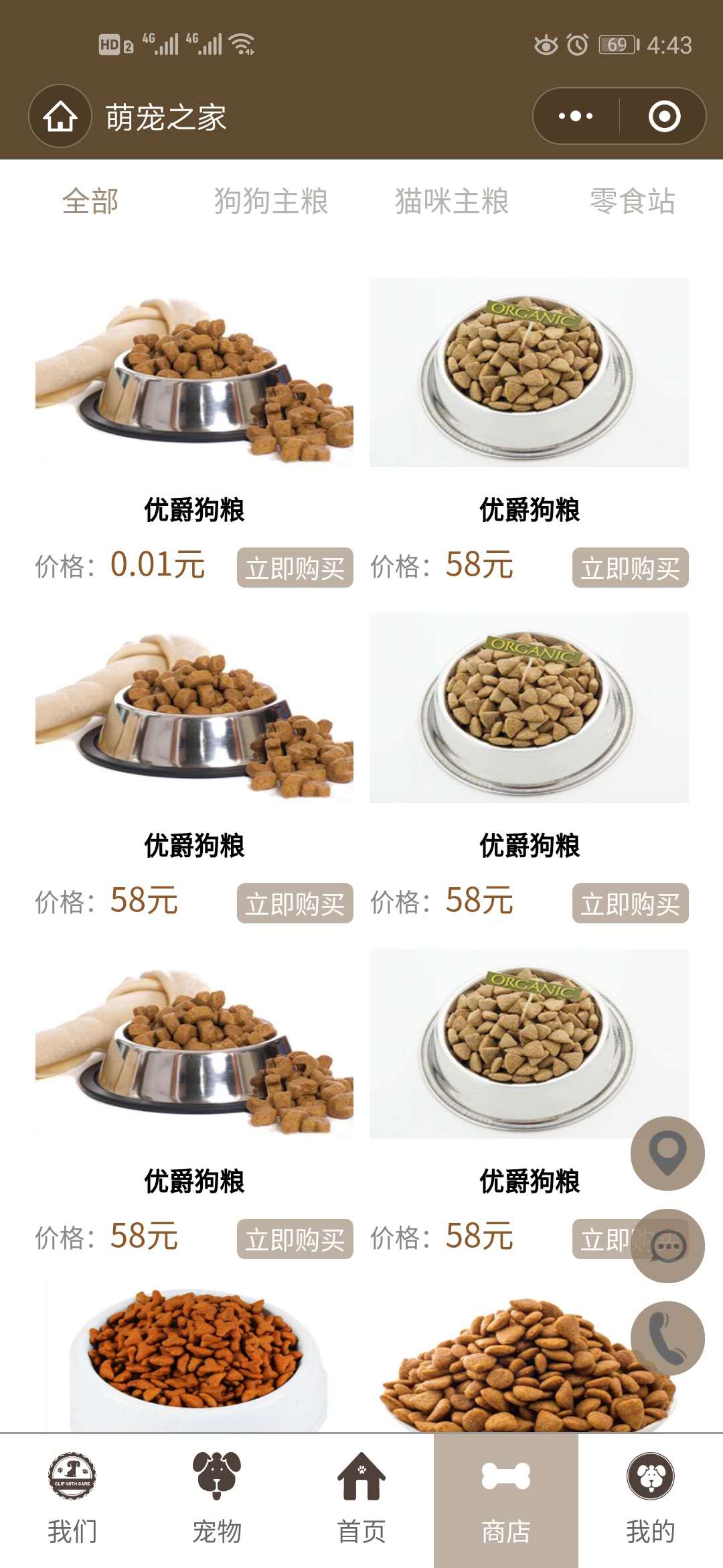 3、主粮商店:除了在线销售宠物,还可以发布宠物粮食、用品等商品,在线销售,增加在线销售量。