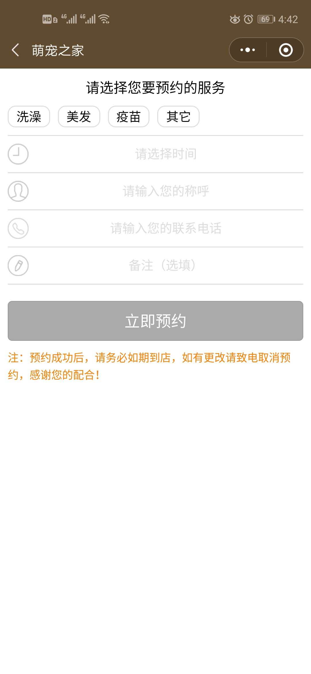 11、预约管理功能:用户在线提交预约理发、疫苗、洗澡等