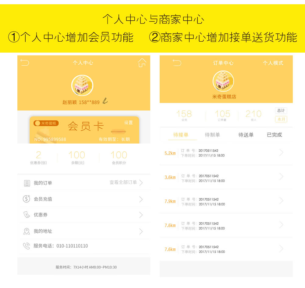 8、客服电话管理:添加客服电话,用户在手机端快速拨打联系客服,形成订单。