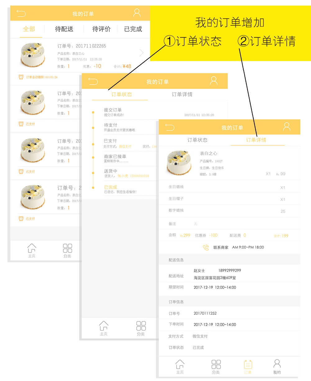 10、订单管理:前后台都有订单功能,前台手机端用户可以查看自己订单情况,如查看待配送、待评介、已完成、退款订单,取消订单,对未支付订单发起支付。