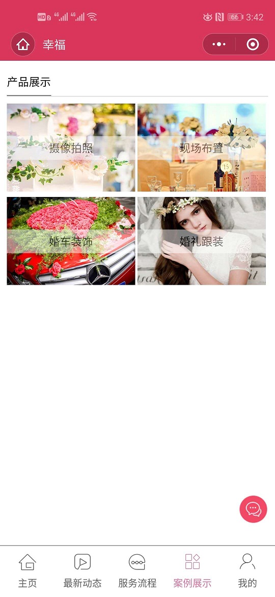 7、服务项目管理与展示:如摄像拍照、现场布置、婚礼跟装。