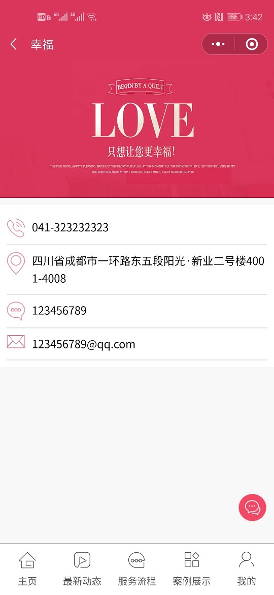 该应用主要适用于婚庆机构用于服务内容展示,用户在线咨询和预约。
